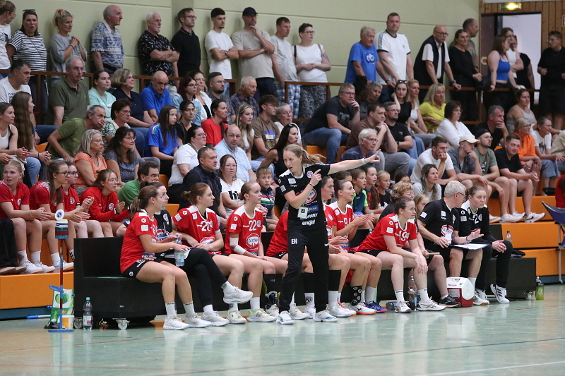 Mit dem deutlichsten Sieg des ersten Spieltages steht die HSG an der Tabellenspitze. Das wird sich vermutlich direkt am nächsten Wochenende ändern. Auf jeden Fall war es ein mutiger und engagierter Auftritt des neu formierten Teams von Esther Herrmann und Bina Jöhnk, auf dem sich weiter aufbauen lässt. Alte und neue Rollenverteilungen greifen bereits gut ineinander.